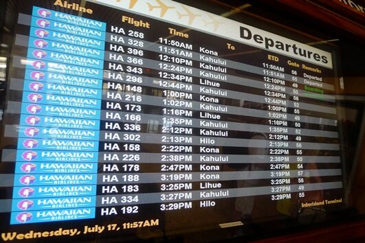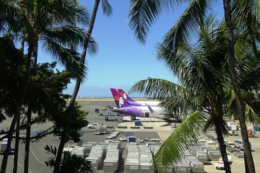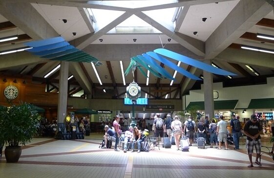 ホノルル空港に到着し、荷物をピックアップして国内線の乗り継ぎ方向に移動。