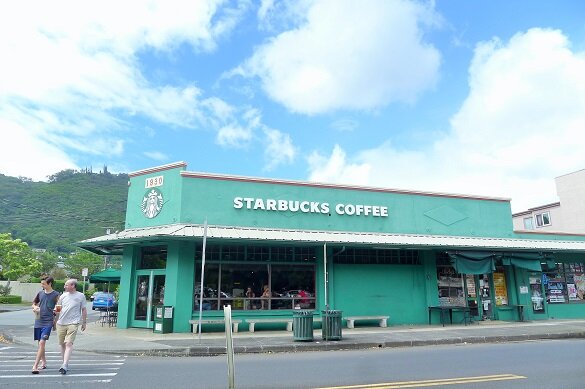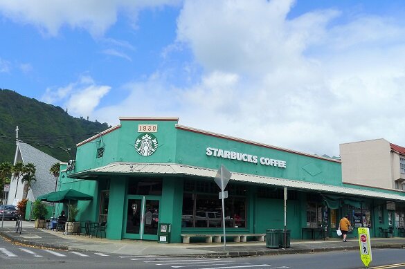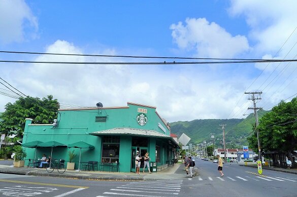 イーストマノアロードをホロホロ歩いていると、少し先の方に見えて来た緑色の建物。