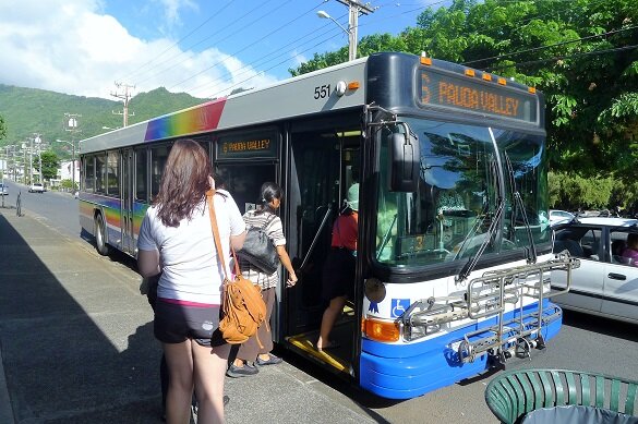 1時間以上ゆっくり過ごしてスタバのお店を出ると、目の前のバス停にちょうど停車していたザ・バス。