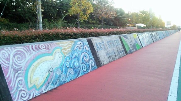 陽が落ちて行くのを見ながら、音楽か韓国語講座を聞きながら壁画の続く道を歩いて帰るコースが