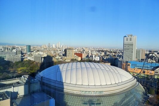 窓から見える東京ドーム。