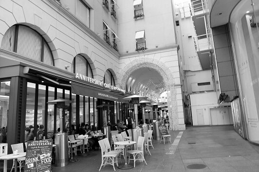 apple store の横の道を行くと、文房具カフェという珍しい名前のカフェの前で足が止まる。