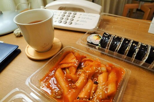 テイクアウトの文字と、大好きなトッポッキ&キンパッに目が釘づけ。