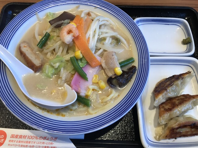 小さいちゃんぽんと餃子3個のセット。これくらいの量でちょうどイイんですが