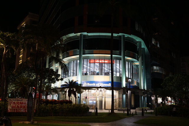 クヒオ通りに面しているので、オープンテラス席からはこんな風景を見ながらの食事。