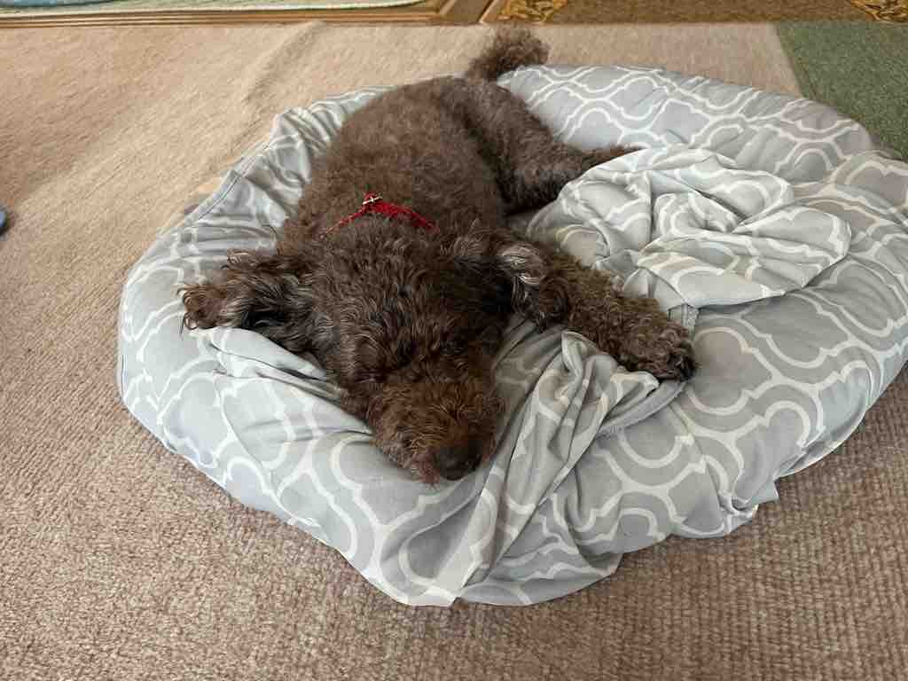 6月中頃から、散歩の後は朝ごはんをボイコットして早々に丸マットの上でくるくるし