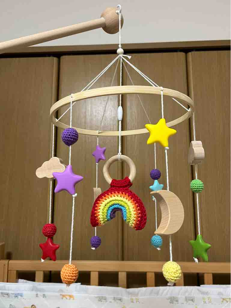 写真のベッドメリー、実家のベビーベッド用に購入しました。