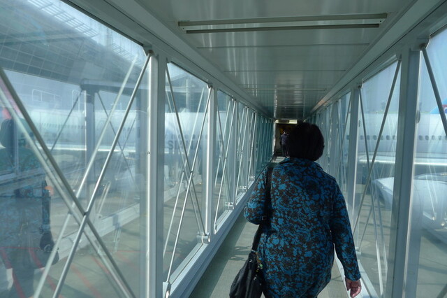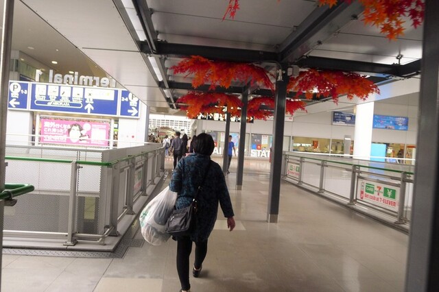 手続きを全て終えて、JR乗り場へ向かう母の後ろ姿。