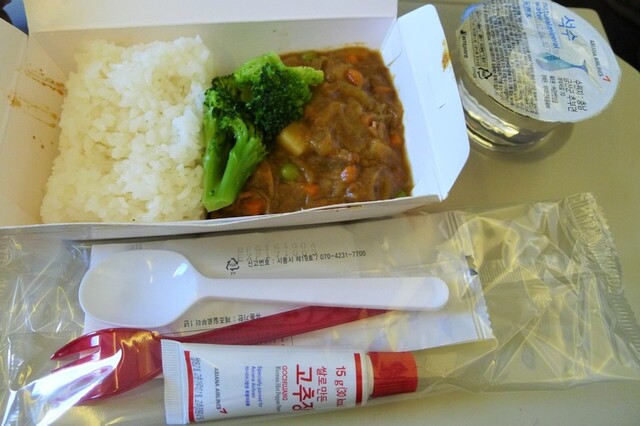 機内食はカレーライスだった。コチュジャン付き^m^