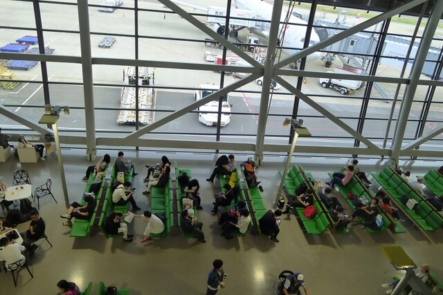 出発ロビーには、これから旅が始まる人達。