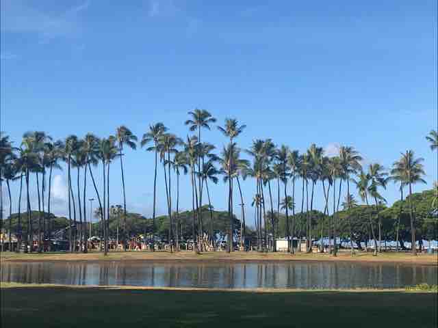 ワイキキに着いた直後なので、椰子の木を見てはルンルンし